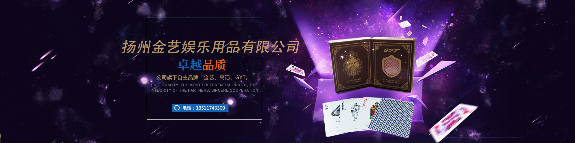 揚(yáng)州金藝娛樂(lè)用品有限公司專(zhuān)業(yè)生產(chǎn)撲克牌、彩印、娛樂(lè)用品生產(chǎn)型企業(yè)。 本公司作為生產(chǎn)PVC、PET、PP、磨砂、高亮光、透明環(huán)保撲克;中、高檔紙牌、魔術(shù)牌、異形撲克牌的專(zhuān)業(yè)廠(chǎng)家。